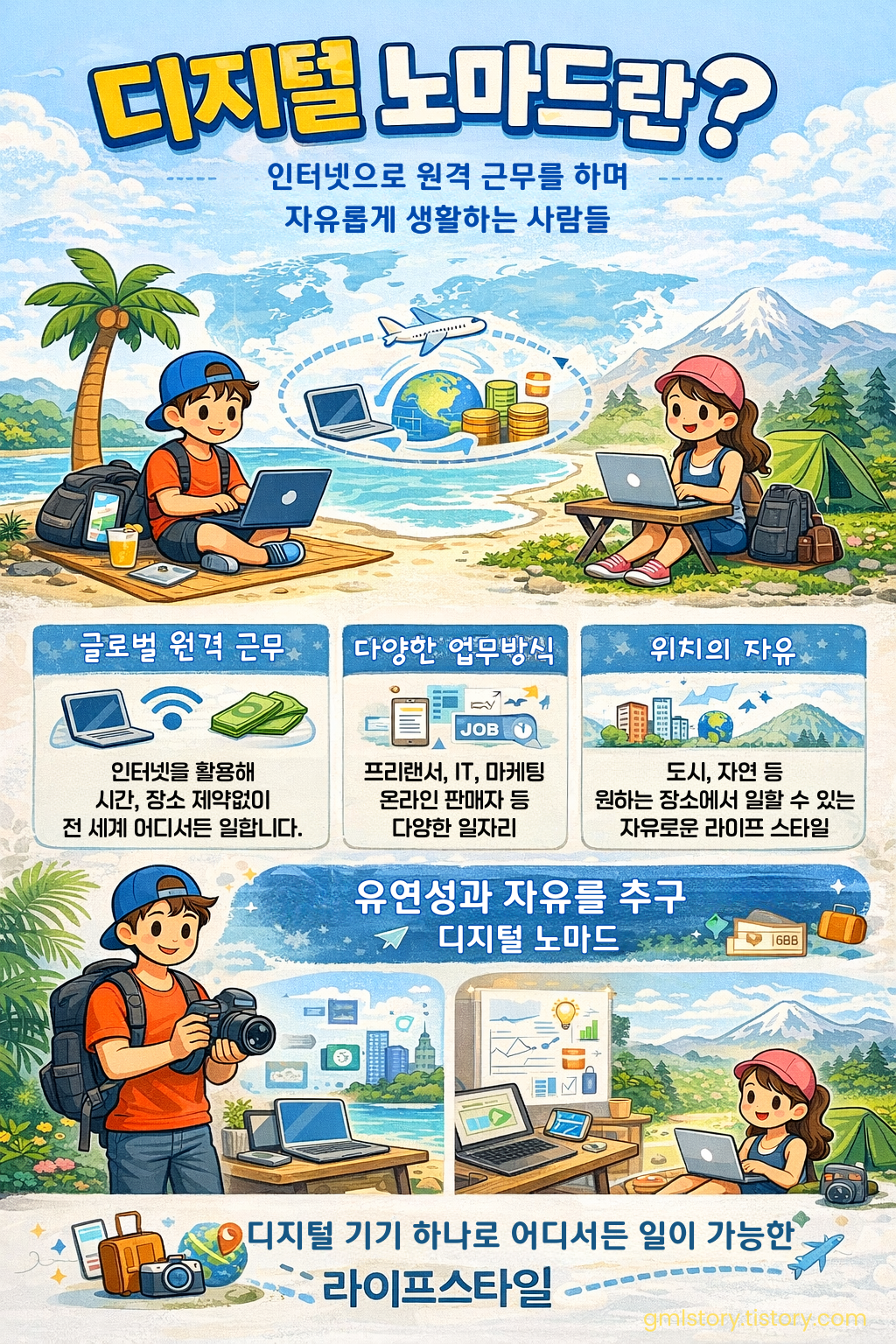 디지털 노마드에 대한 설명을 보기 쉽게 이미지로 정리
